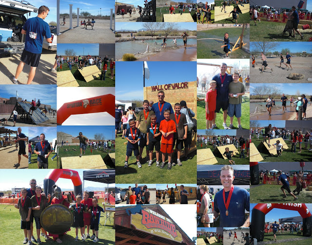 Ryon finished the Spartan Race yesterday. It is the only race he has done, even though he's wanted to do an endurance race for a long time. The Spartan Race was filled with climbing over 8' walls, water crossings, mud pits, pulling heavy concrete sleds, crawling under barbed wire, javalin throws, jumping fire pits, and fighting with gladiators. He has lots of bruises and scratches today, but mostly he's just happy that he finished it, and ran the whole 8 miles. After the adult race there was a children's race, my boys all ran in it and had a lot of fun.
